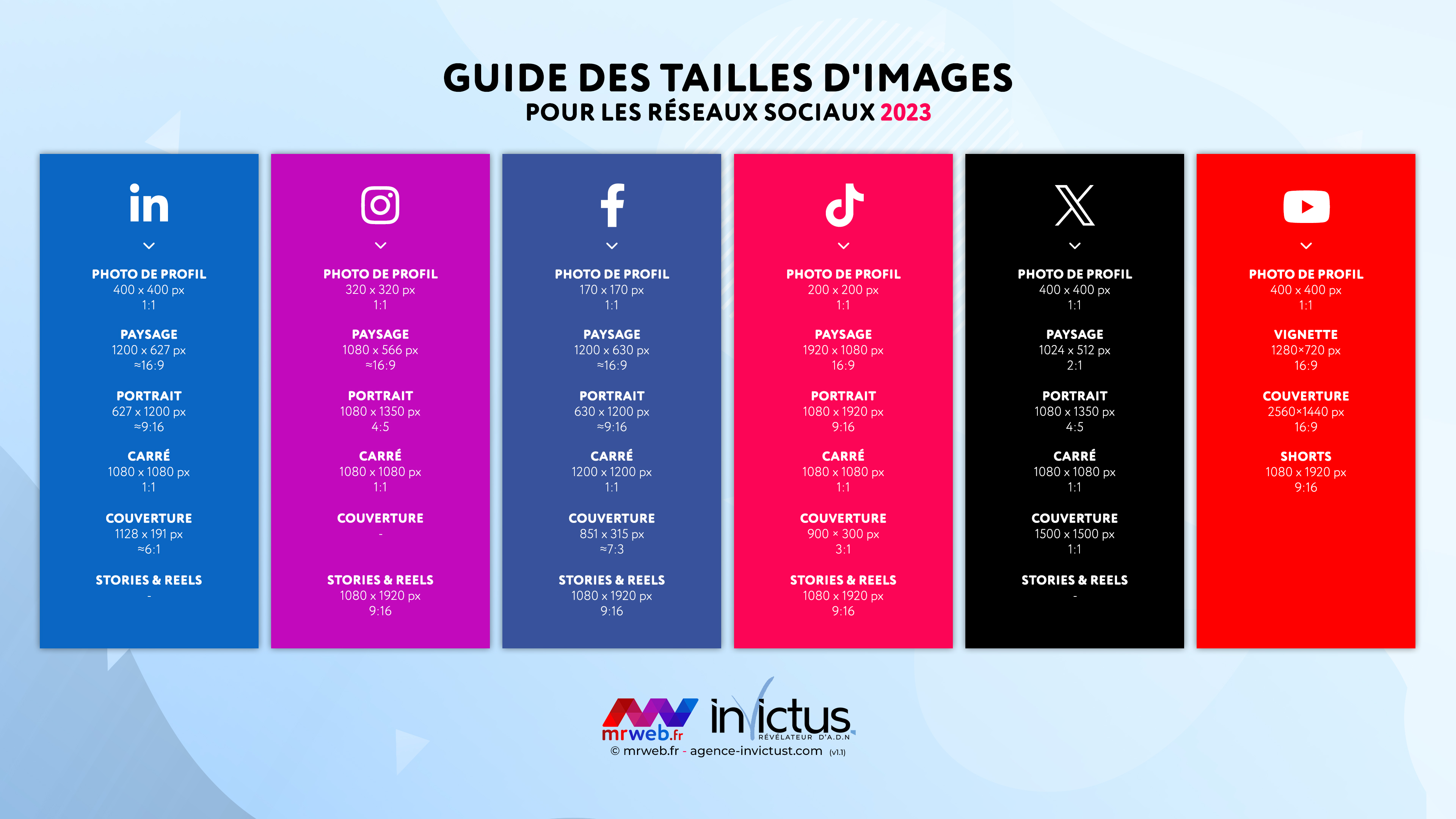 S’orienter sur les réseaux sociaux requiert une méthodologie précise, surtout lorsqu’il s’agit d’aborder la dimension visuelle. Chaque plateforme, qu’il s’agisse d’Instagram, Facebook, X (anciennement Twitter), LinkedIn, TikTok et Youtube possède ses propres spécifications en matière de dimensions d’images. Afin de vous aider à optimiser vos publications et à garantir une présentation professionnelle, nous avons préparé un guide détaillé des dimensions d’images recommandées pour chaque réseau social.